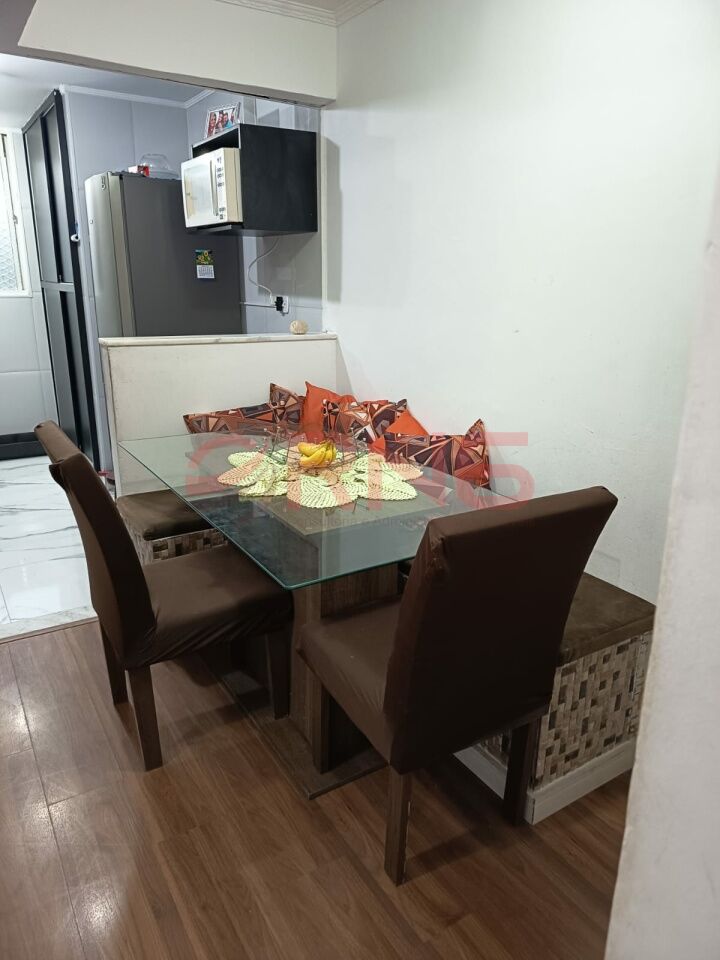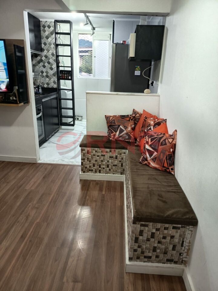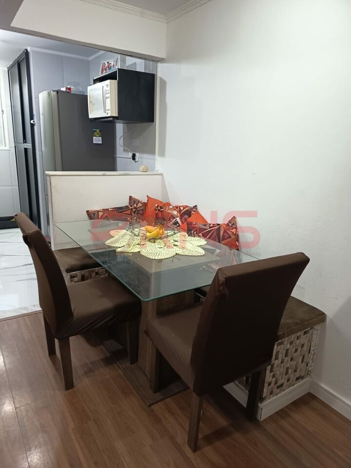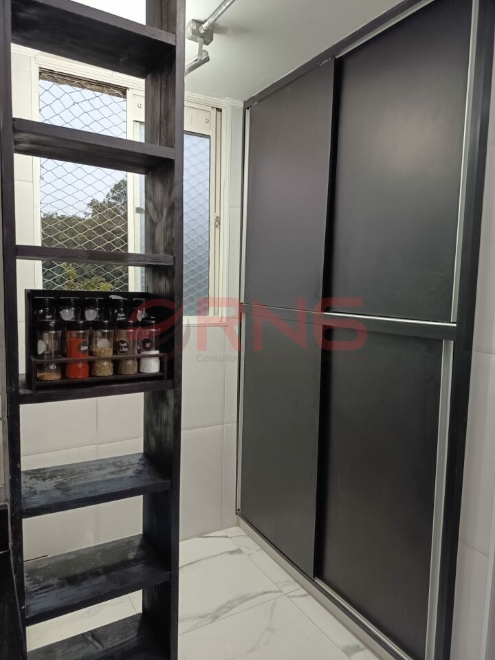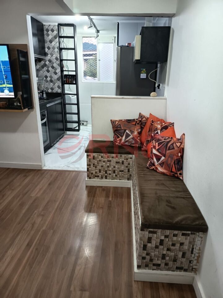 Apartamento com 2 dormitórios, armário embutido na cozinha, lavanderia e quarto, piso de madeira e porcelanato, cozinha com cooktop, forno e canto alemão.