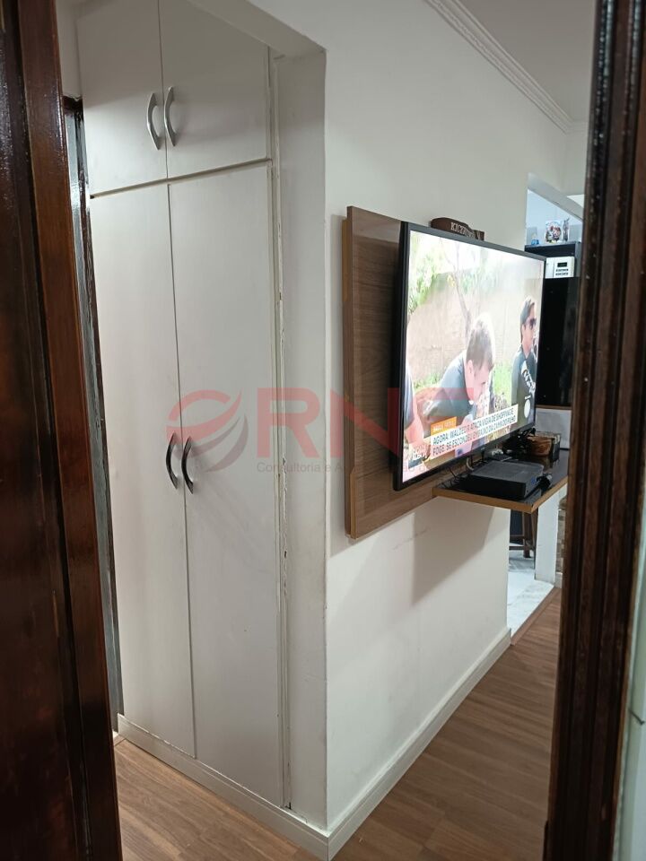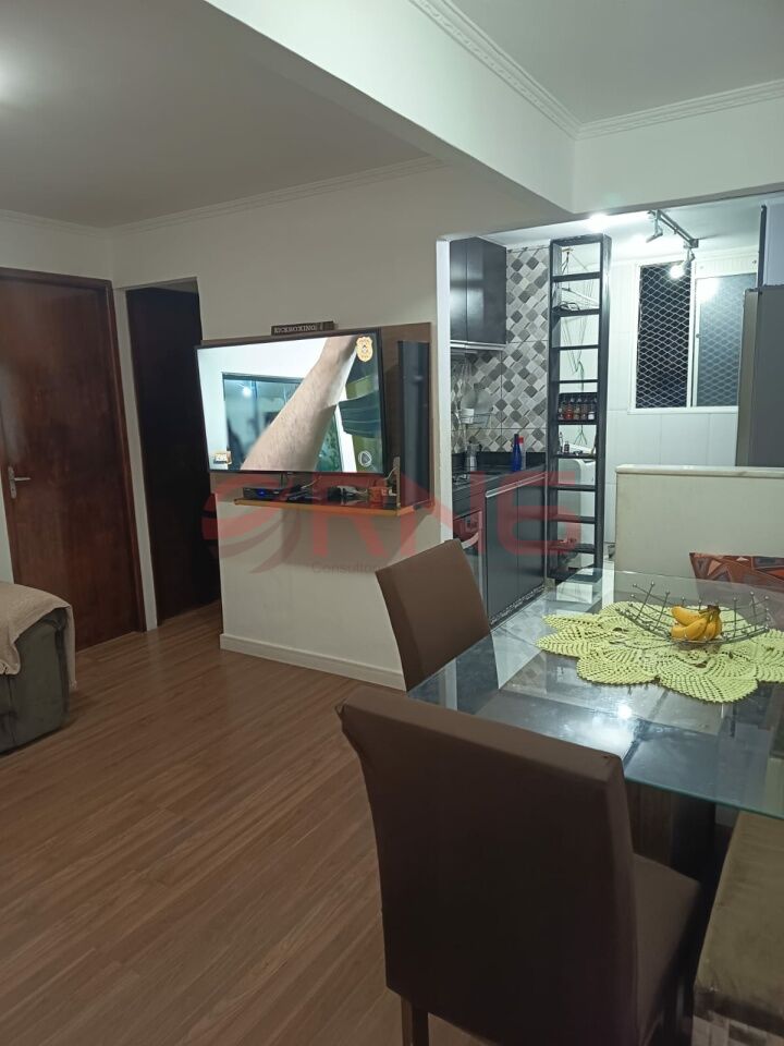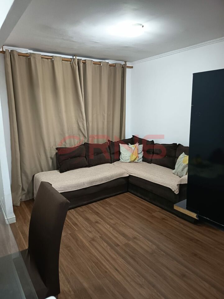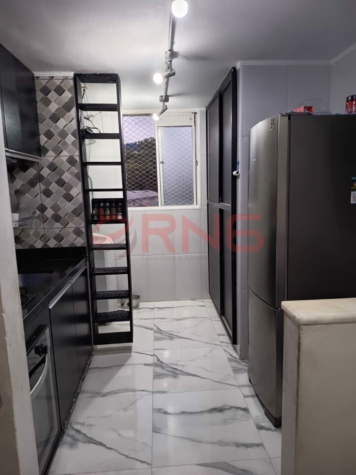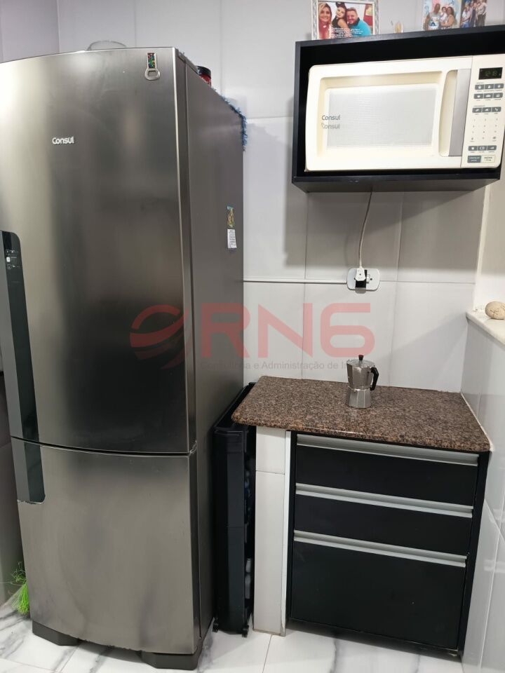 Apartamento com 2 dormitórios, armário embutido na cozinha, lavanderia e quarto, piso de madeira e porcelanato, cozinha com cooktop, forno e canto alemão.